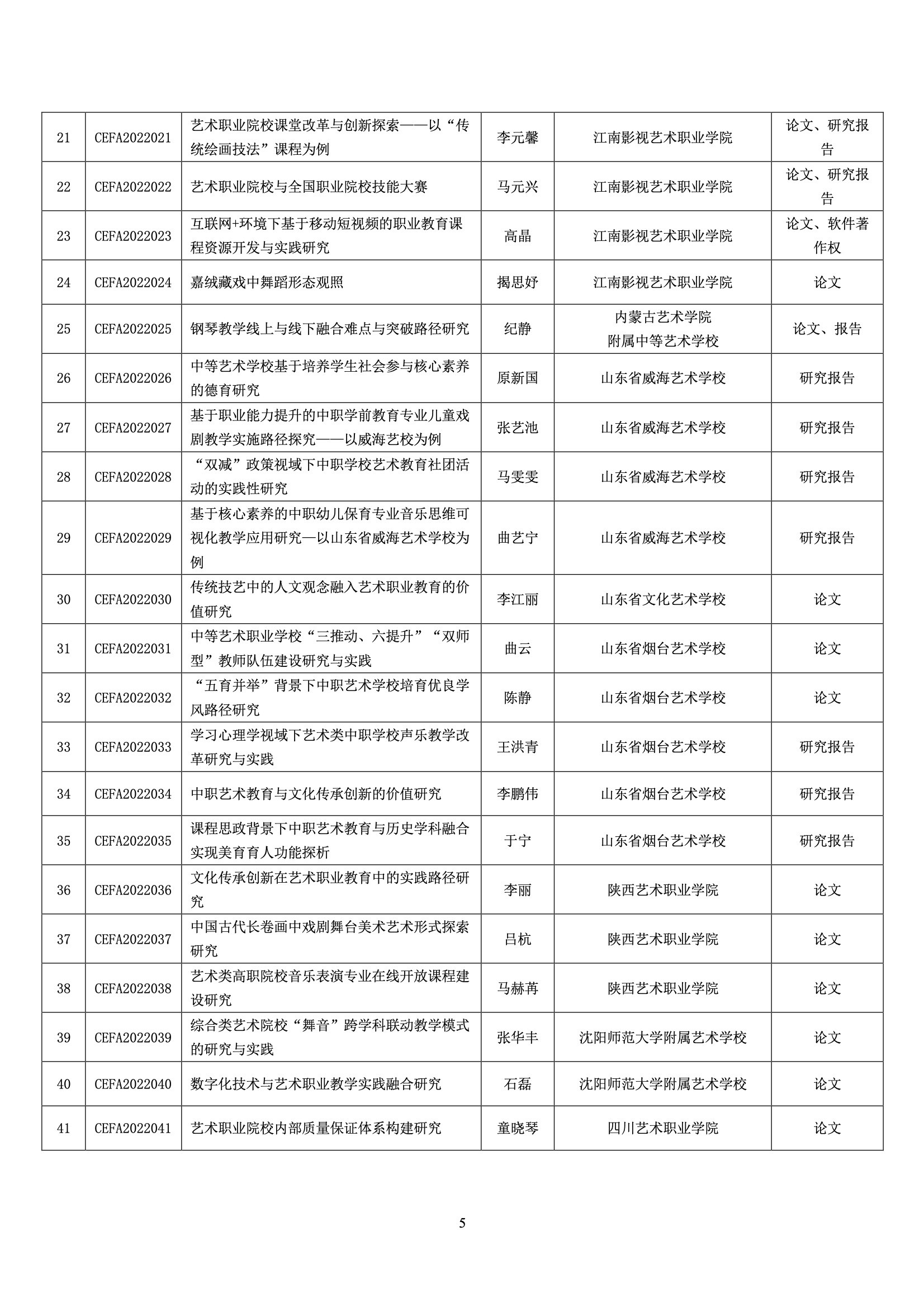 关于公布2021年度中国艺术职业教育学会科研项目立项的公示