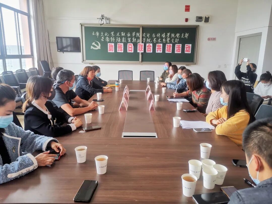 为充分发挥学院党建引领作用,增强基层党组织的凝聚力、向心力。5月18日,设计与传媒学院党支部与云南特殊教育职业学院艺术系党支部(以下简称“特职院党支部”)在云南特殊教育职业学院举办了“助残日联合共建”活动。
