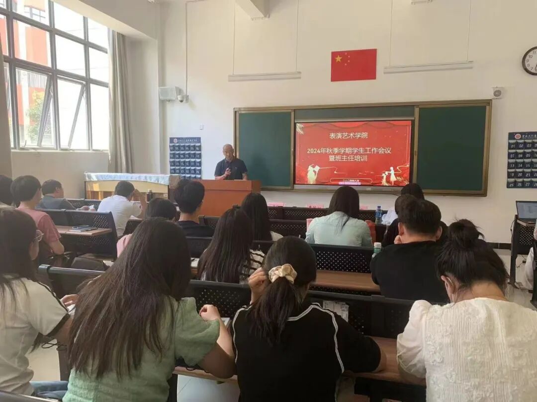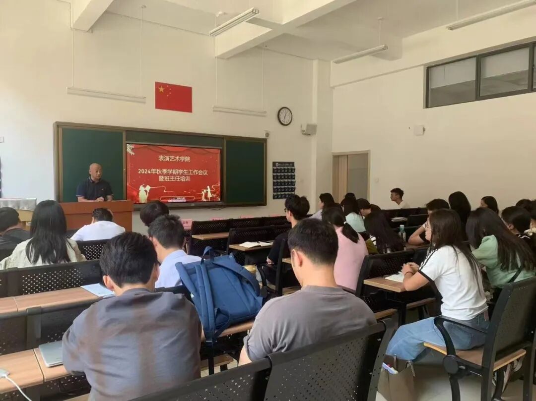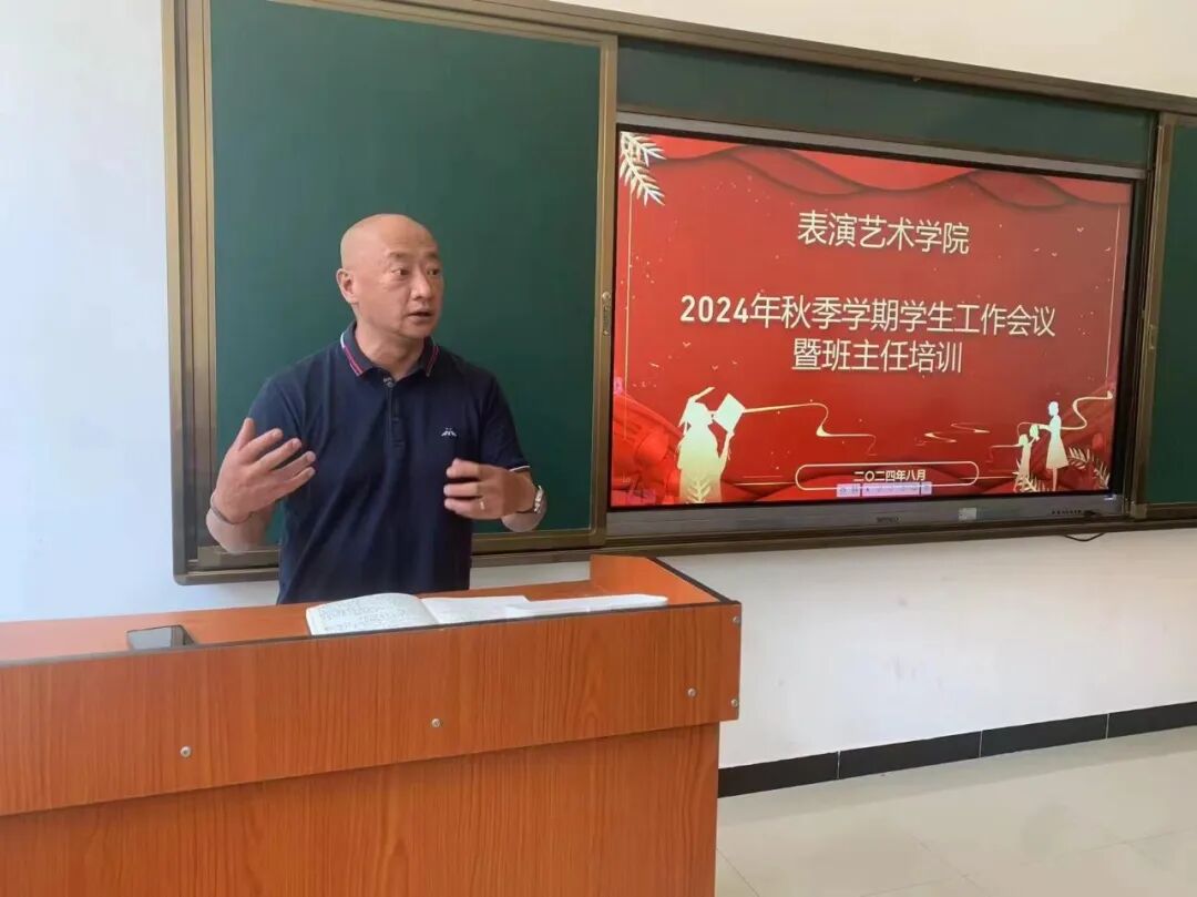为深入学习贯彻习近平总书记关于教育工作的重要论述精神,统一思想,凝聚共识,进一步明确2024年秋季学期学生工作目标和发展规划,加强班主任队伍建设,充分发挥班主任队伍引领作用,有效夯实新学期学生工作基础,8月22日,表演艺术学院召开2024年秋季学期学生工作会议暨班主任培训会。表演艺术学院领导班子、全体班主任和专职辅导员参加会议。会议由党支部副书记李莉媛主持。