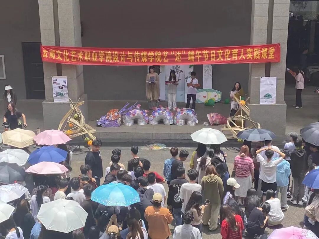 为发挥传统节日文化育人功能,探索中华优秀传统文化创造性转化、创新性发展新路径,6月11日,设计与传媒学院第二届艺“述”端午思政课堂在学校中心剧场外广场开讲。