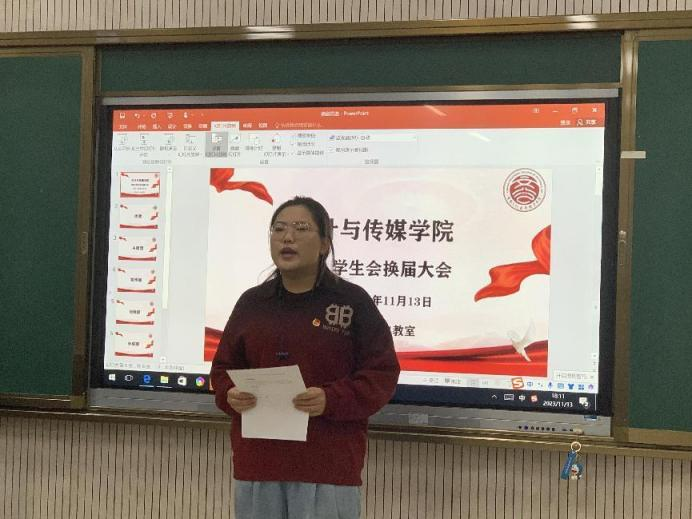 最后,各部门负责人候选人上台发表竞选演讲。在竞选过程中,他们端庄大方、信心满满,充分表达了对竞选岗位职责的深刻认识和服务同学的极大热情。在热烈的气氛中,顺利完成了设计与传媒学院新一届学生会换届工作。