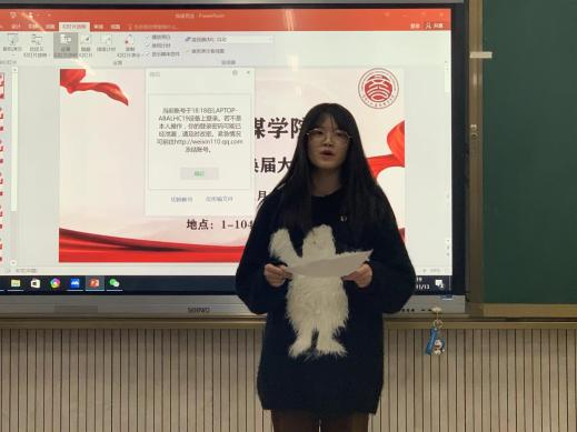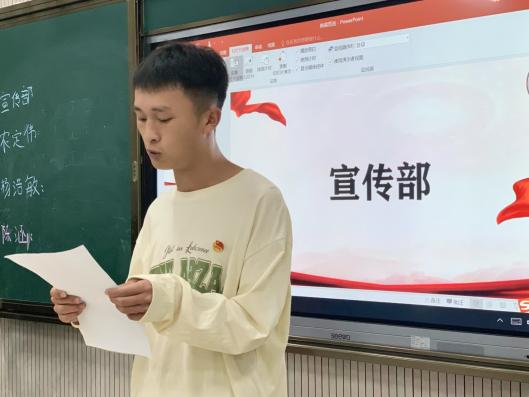 随后,上届学生干部进行发言。他们回顾过去一年的工作,总结汇报各部门工作开展情况,并希望新一届学生干部能够互相帮助、并肩作战,将学生活动办的更好。