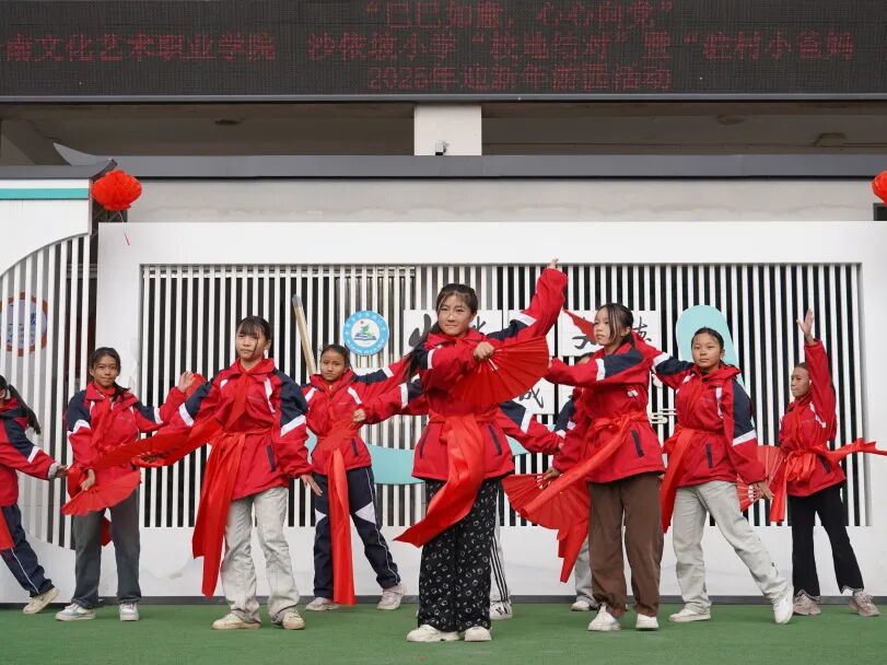 紧接着,活力四溢的暖场表演将现场气氛点燃。舞龙表演中,彩龙在师生们的舞动下活灵活现,时而腾飞,时而盘旋,寓意着吉祥如意;民族课间操展现了独特的民族风情,孩子们整齐划一的动作洋溢着青春活力;民族歌舞打跳更是让全场沉浸在欢乐的节奏中,大家手拉手,围成圈,用欢快的舞步传递着喜悦。