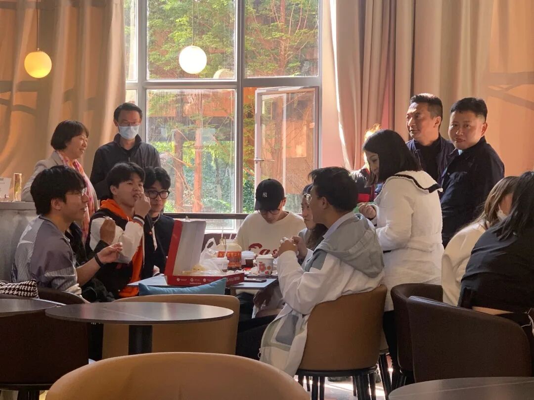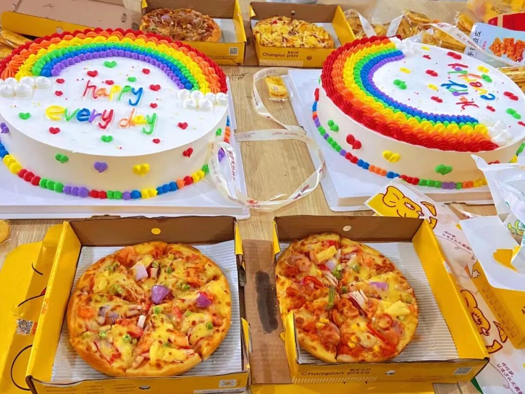 为了能给疫情期间在校不能外出回家的同学们过一个温暖的生日,教师们购买了生日蛋糕、披萨、炸鸡等美食,并组织师生一起游戏、舞蹈、唱歌、话家常、解相思,共祝同学生日快乐。