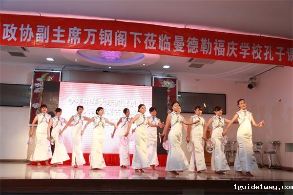 2013年8月13日晚,“中华文化大乐园”缅甸曼德勒营闭营仪式暨汇报演出在曼德勒福庆大礼堂内举行。中国驻曼德勒总领事馆郁伯仁总领事、曼德勒各侨团侨校领导及大乐园学员近300人参加了闭营仪式。活动中,郁伯仁总领事、云南省相关领导、曼德勒福庆学校校长纷纷致辞。随后的汇报演出,学员们完美地展示了自己所学到的中华才艺:“红红火火大中华”、“荷塘月色”、“维族舞”、“青花瓷”等舞蹈精彩绝伦,随乐而起的“太极拳——四两拨千斤”、“太极与绘画”、“杂技”等表演更是引人入胜,“感恩的心”、“龙船调”、“难忘今宵”等优美的歌曲将晚会推向高潮。汇报演出绘声绘色,十分精彩,它不仅展现了中华传统文化的魅力,同时也让中缅师生结下了深厚的友谊,活动取得圆满成功。