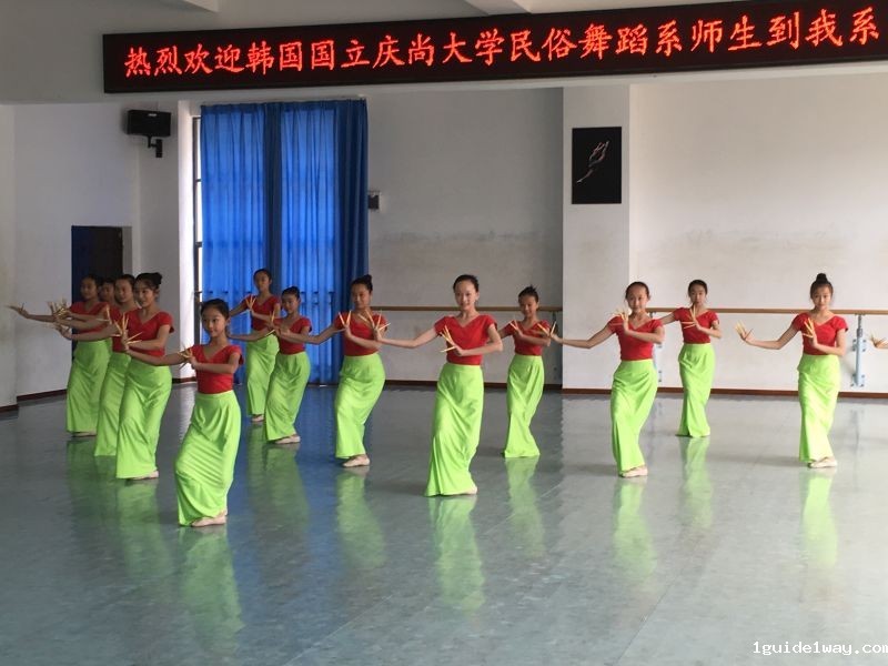 同月,我院又迎来韩国国立庆尚大学民俗舞蹈系师生交流。双方师生进行了教学展示及研讨,学院领导就教学模式、课程设置、人才培养、升学合作等相关事宜与外来专家进行了友好洽谈,并与韩国国立庆尚大学初步达成了我院六年制中专学生毕业后可享受免试留学的意向协议。