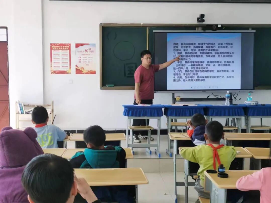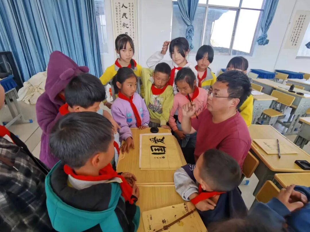 活动伊始,阿哈迷村驻村工作队第一书记杨澍教授以颜真卿《劝学》“三更灯火五更鸡,正是男儿读书时。黑发不知勤学早,白首方悔读书迟”为引子,展开颜体书法的讲授。这不仅是对孩子们学习的鞭策,更是对他们珍惜青春、把握时光的深情呼唤。在朗朗上口的诗句中,孩子们仿佛看到了古人勤奋苦读的身影,感受到了学习的重要性和时间的宝贵。