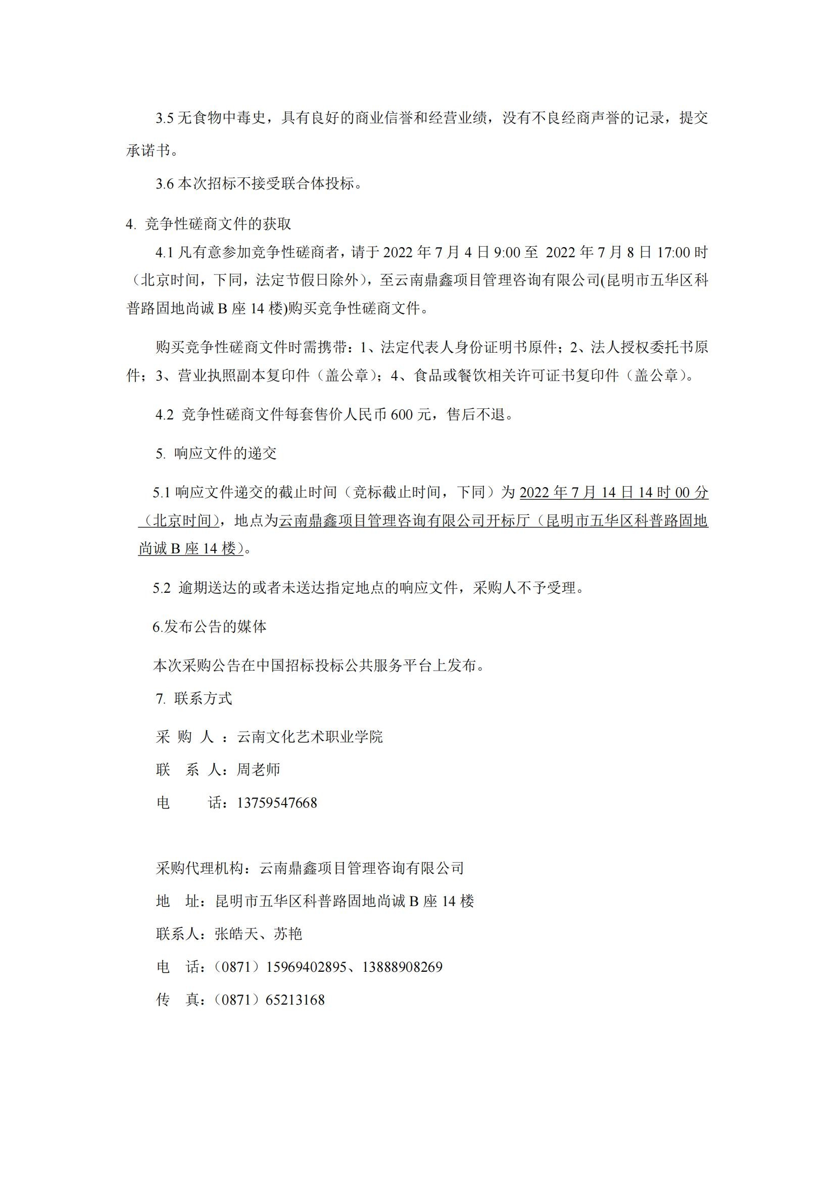 044云南艺术职业学院食堂招租竞争性磋商公告
