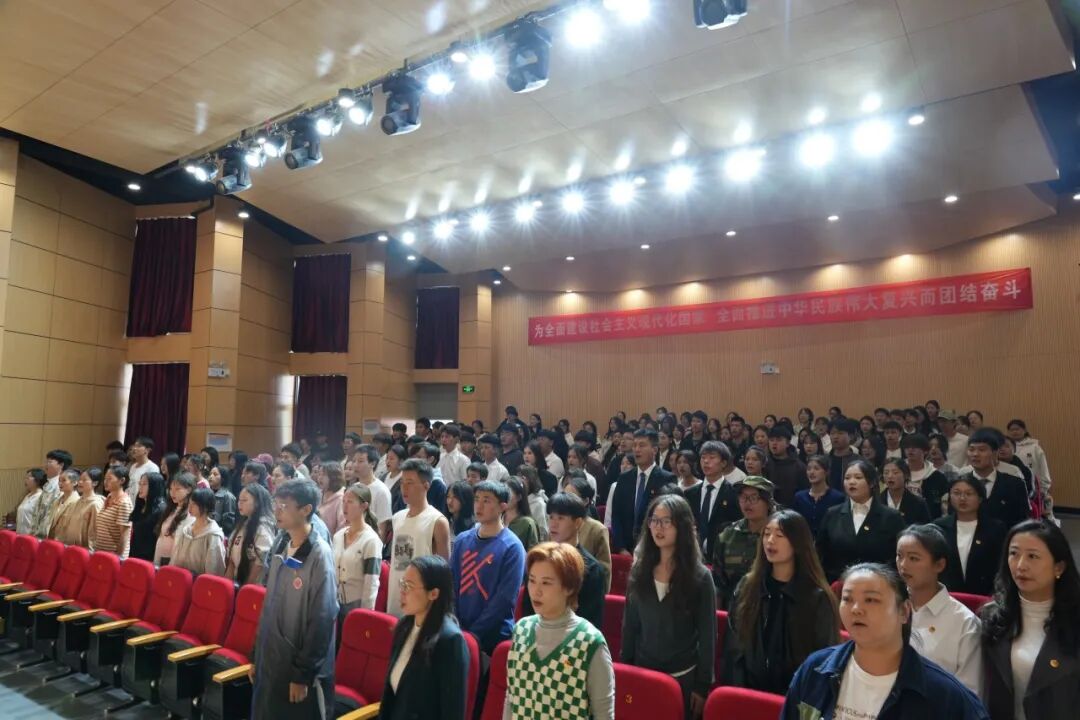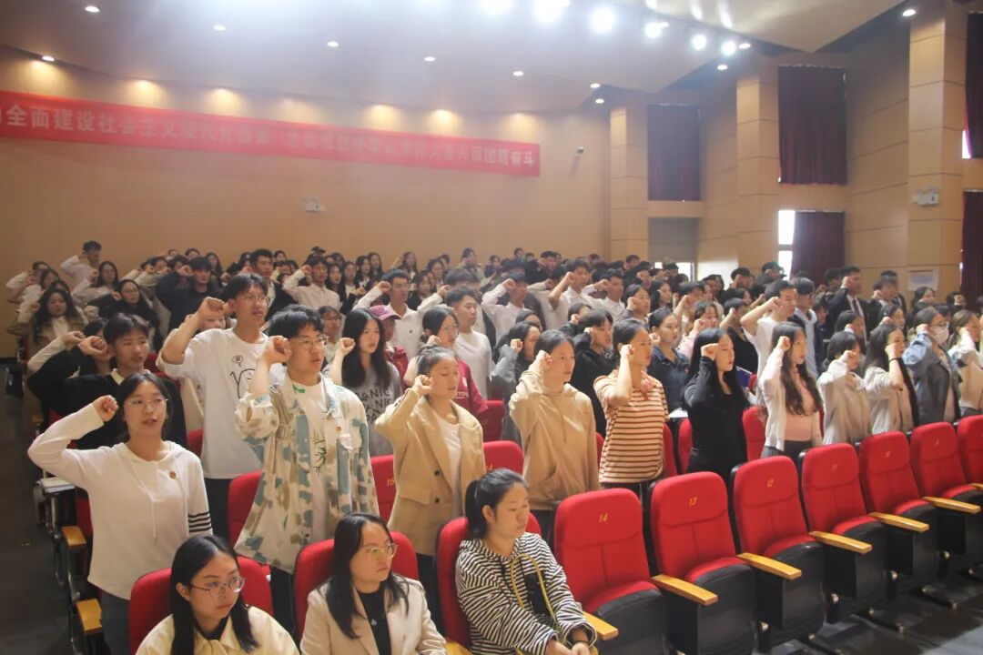 开班仪式在庄严的国歌声中拉开序幕。随后,学院团委教师和梦蝶带领全体学员重温入团誓词。全体学员面向团旗,高举右拳,目光坚定,在庄严的团旗下重温入团誓词,进一步强化团员意识,增强团员的责任感和荣誉感,引导广大团员青年不忘初心、牢记使命,听党话、感党恩、跟党走。