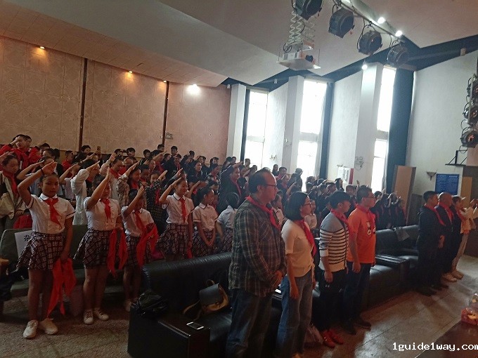老队员给新的少先队员们配带红领巾,优秀的少年队员们传承了我们革命先辈的精神。接下来由团委倪薇老师领唱《中国少年先锋队队歌》,“我是中国少年先锋队队员,我再队旗下宣誓;我热爱中国共产党,热爱祖国,热爱人民,好好学习,好好锻炼,准备着为共产主义事业而奋斗!”我们静心聆听,激动万分。
