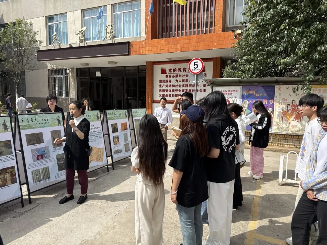 除主题展板外,活动还展出了《义勇军进行曲》手稿复制品、杨升庵手书对联摹本、徐霞客手绘云南路线图影印件等珍贵资料。工作人员通过“文物细节导览”,带领学生观察聂耳手稿中反复修改的乐谱痕迹、杨升庵墨迹里蕴含的滇地元素、徐霞客笔记中对“石钟乳”“温泉”等地理名词的最早记载,感受名人严谨的治学态度与艺术追求。