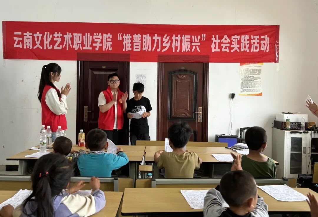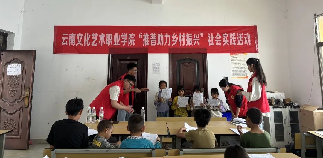 为贯彻落实习近平总书记关于教育的重要论述和关于语言文字工作的重要指示批示精神,加大民族地区、农村地区国家通用语言文字推广力度,助力乡村振兴战略。我校“艺润童心 石榴花开”民族团结实践团,于7月10日——7月14日赴红河州金平县阿哈迷村和沙依坡乡中心小学,开展了一系列富有成效的“推普助力乡村振兴”活动,以实际行动为乡村振兴贡献青春力量,促进各民族之间的文化交流与融合。