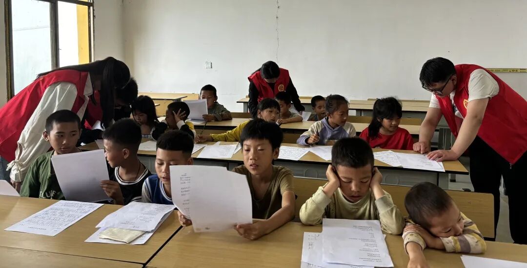 通过调研,实践团队成员了解到当地儿童较为内向害羞,不愿意主动开口讲话,因此在开班第一天,开展了绕口令比赛、词语竞猜等趣味小游戏,引导孩子们猜字谜识汉字,带领其感受语言文字背后的文化底蕴和独特魅力。鼓励孩子们主动发言,通过互相介绍、表演节目,让实践团成员们和孩子们在简单的课程学习中逐渐熟络起来。