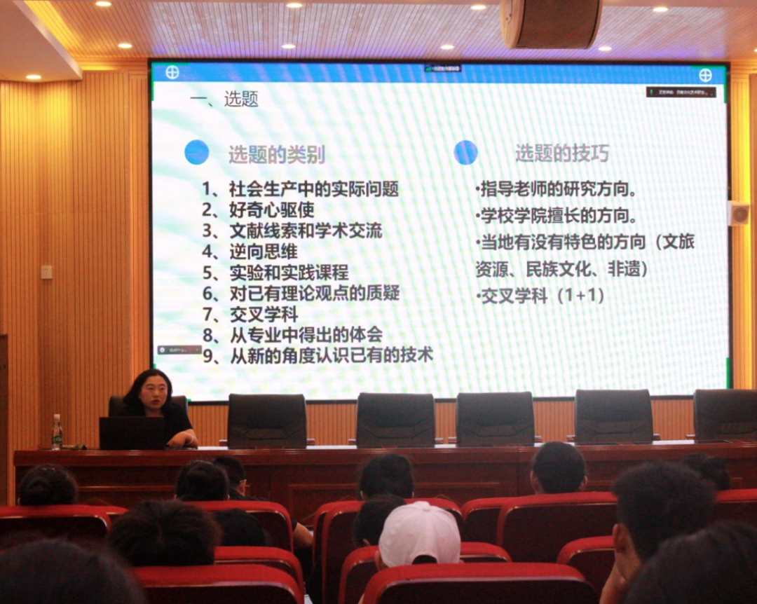 本次培训特别邀请云南交通职业技术学院教师施佳,为师生进行“挑战杯”专题辅导,分享赛事经验。施佳老师结合多年指导“挑战杯”竞赛的经验,就“挑战杯”的赛事规则、竞赛选题和申报材料、计划书撰写等方面为师生进行了系统、详实地指导,并就路演及评委关注点等注意事项进行点拨提醒。培训尾声,她与参加培训会的同学们进行互动与分享,现场解答同学们在项目创作过程中遇到的问题。