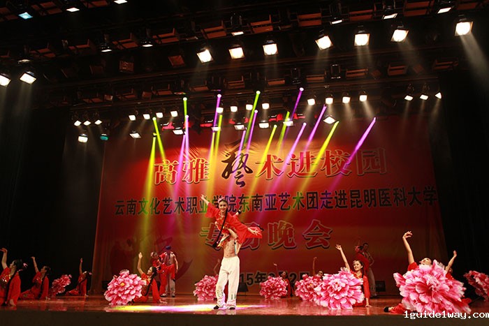 2015年6月2日,我院东南亚艺术团和实验杂技团带着全院师生的问候和精心编排的节目,赴昆明医科大学开展“高雅艺术进校园”专场演出,为昆明医科大学全校师生献上了一台集舞蹈、音乐、杂技、戏曲为一体的综合演出节目的精彩晚会,受到了各位领导、老师和同学们的热烈欢迎,也受到了社会各界的一致好评。