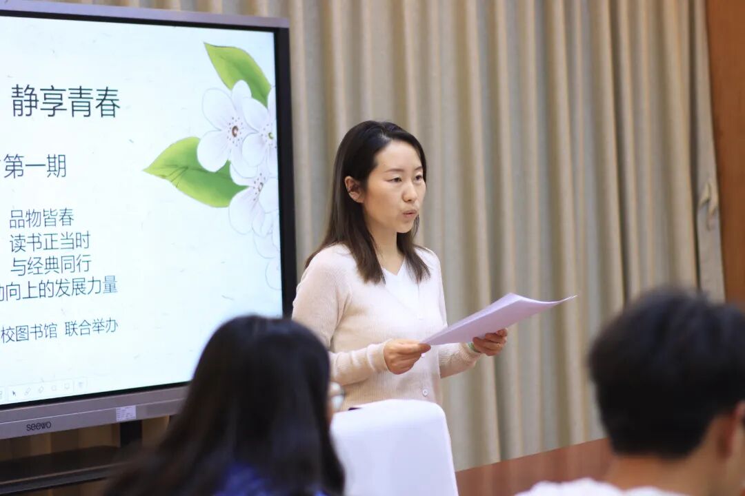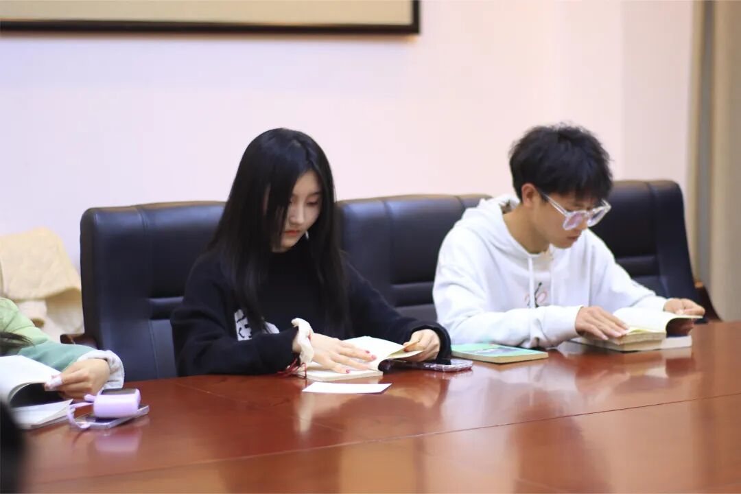 设计与传媒学院党支部副书记闫俊林对读书活动提出了初衷和期望,读书学习是当代大学生坚定理想信念、提升精神境界的重要途径,百花盛开、杨柳青青的春季,可以外出踏青赏花,也可以捧起一本好书,享受美好的阅读时光。今天,让我们放下手机,徜徉书海,与圣贤为友、与经典同行,在阅读中修身养性,用读书淬炼意志品质。