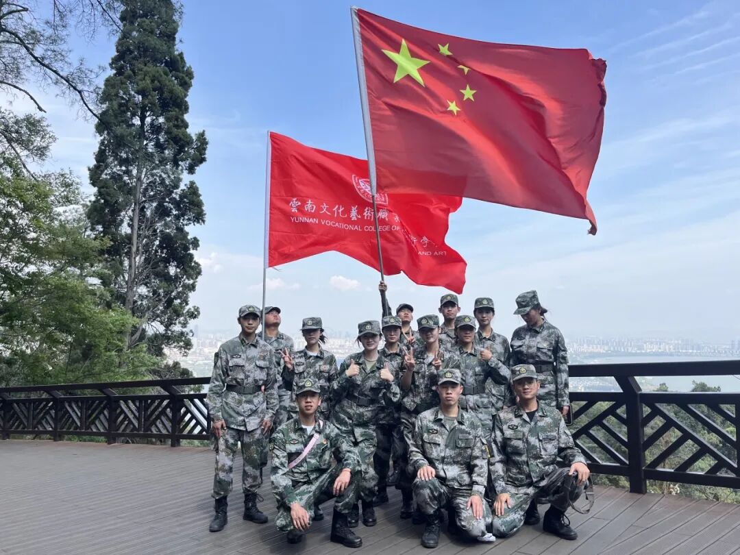 学院青年学子们和国旗互动合影吧